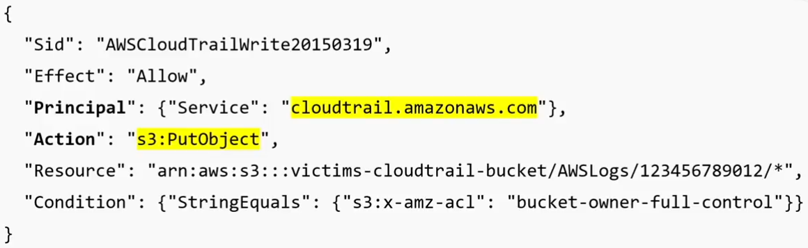 During the talk they specify several examples, such as S3 buckets allowing cloudtrail (of any AWS account) to write to them: