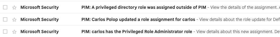 Moreover, PIM send emails whenever a privileged role is being assigned to someone.