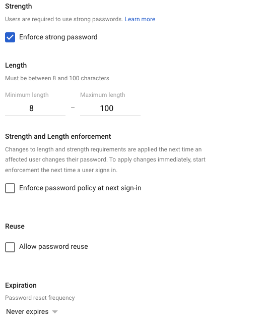 - If people is accessing Workspace through a third party provider, these requirements aren’t applied.